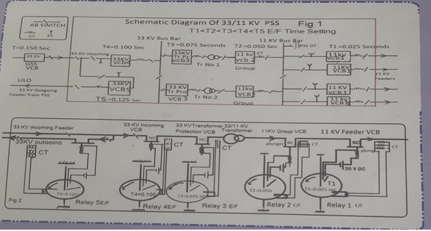 disconnecting the faulty part of lines. Fig ! is a lay out of a PSS and fig2 shows connections of VCB and earth fault relays. Time setting and co ordination of relays in different levels of protective